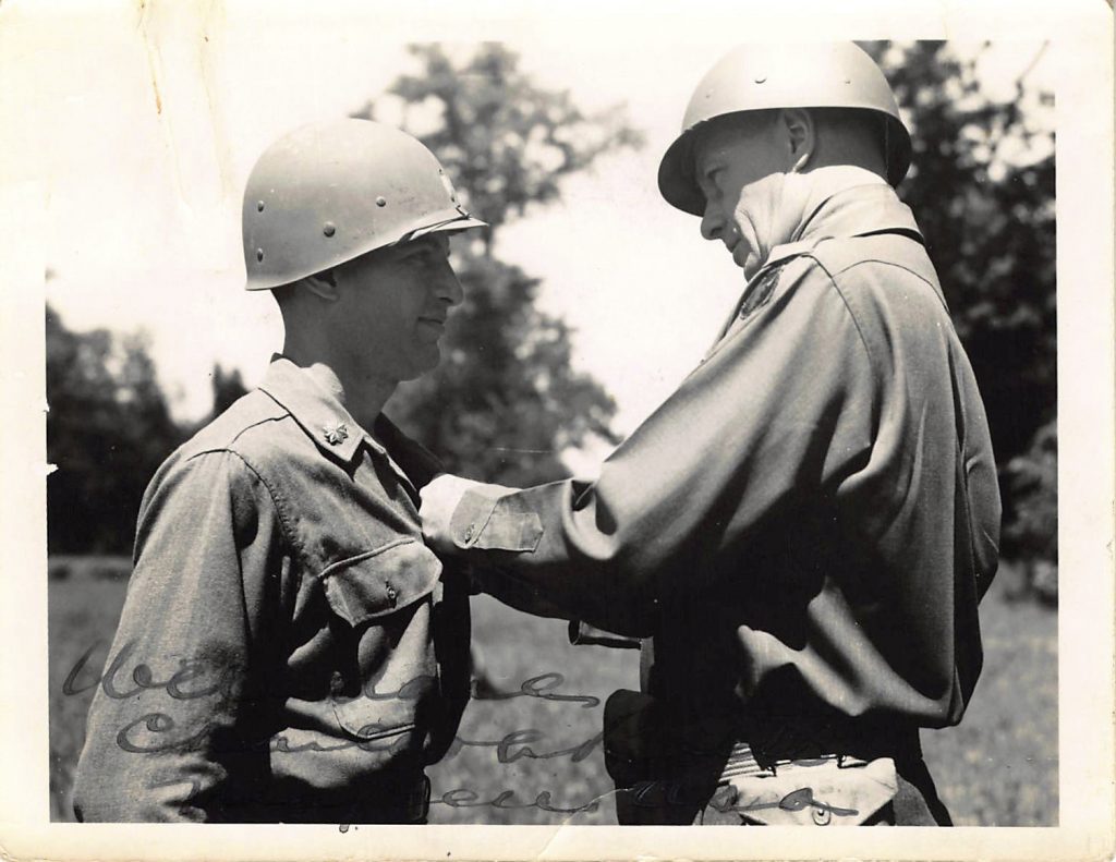 And below her, my father receiving the Bronze Star from his commanding general in early 1944 (the incident was in December 1943).