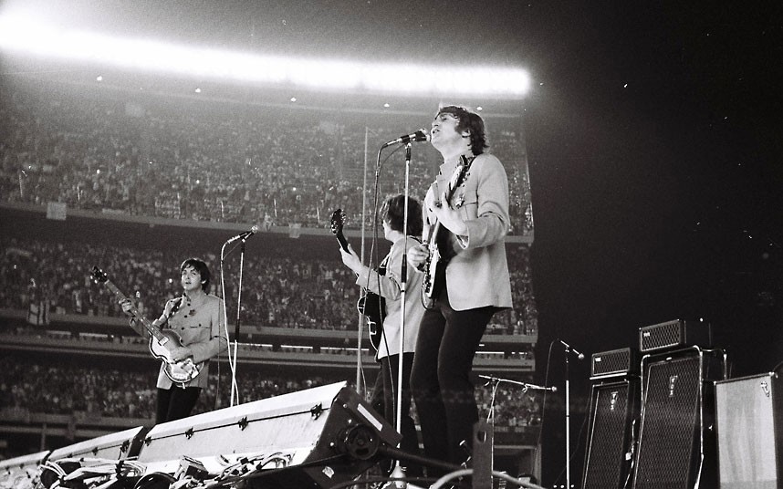 The Beatles performing at Shea stadium in 1965. They built their reputation, in the early days, on their electric live performances at the Cavern Club in Liverpool. They were incredibly loud, raucous, entertaining, and engaging.